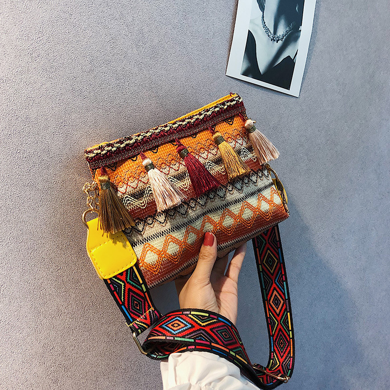 Elevate your accessory game with our stunning Ethnic Wide Shoulder Strap Fringed Crossbody Bag. This bag is not just a fashion statement; it's a reflection of your unique style and personality.
